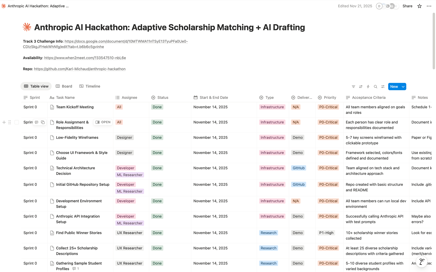 The result is a vector canvas-based platform powered by the claude API for multiple drafts organized visually, insight from scholarship winning drafts, and AI interaction that feels more like a conversation.